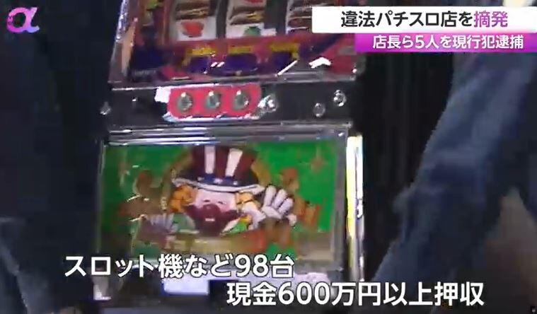 【闇】1年間で4億円稼ぐ違法パチスロ店を摘発。店長ら5人を現行犯逮捕